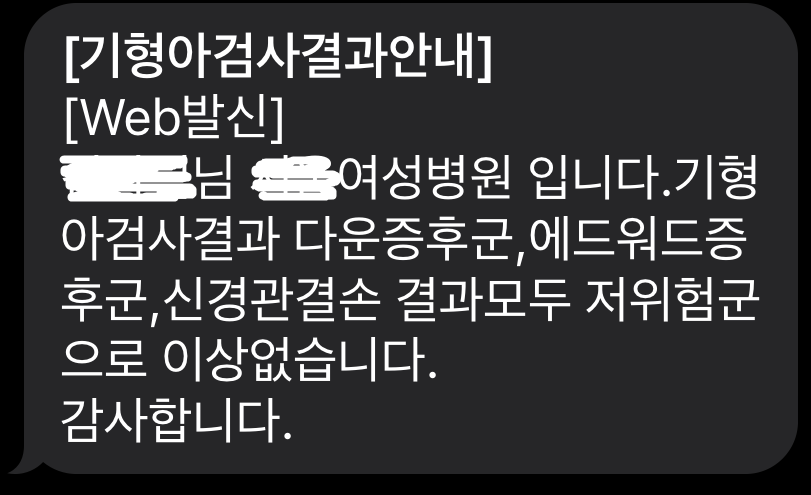 검사결과 나오기 전까지 살짝 긴장했었는데, 문자를 받으니까 너무너무 안심이 됐었어요!!